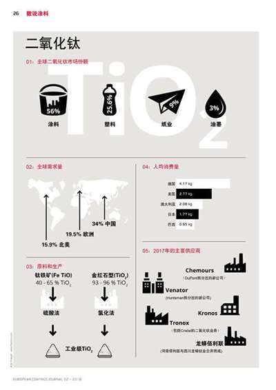全球二氧化鈦市場份額中涂料占56%