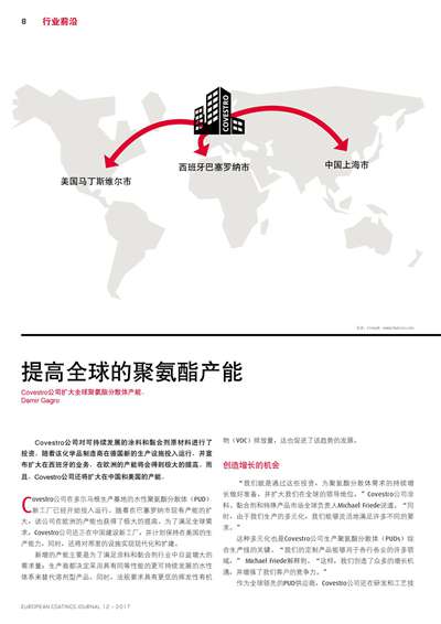 Covestro公司擴大全球聚氨酯分散體產能