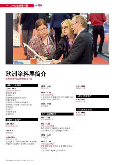 歐洲涂料展和會議的計劃日程一覽