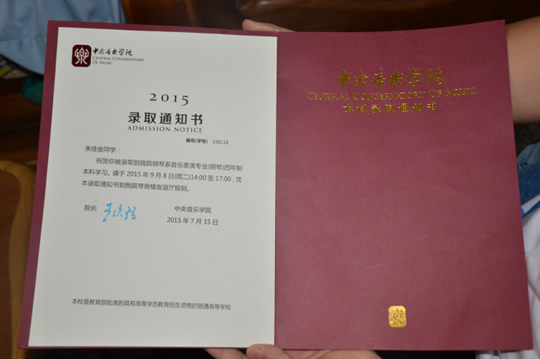 “晨陽水漆不僅是一家環保企業,更是一家負責任的愛心企業。佳俊能夠考上中央音樂學院,我們由衷的感到高興??吹絹砑芽σ魳返膱砸闩c堅持,身上散發出的爽朗和樂觀,我們也深深的被觸動?!背筷査嵝麄鞑坎块L王帥這樣說道。