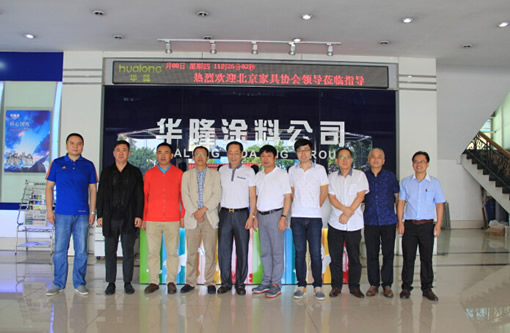 2015年10月8日,北京家具行業(yè)協(xié)會會長何法澗一行蒞臨華隆涂料集團(tuán),考察華隆油改水綜合解決方案,公司董事長麥全旺、總經(jīng)理麥宗毅、總工楊筱秋等領(lǐng)導(dǎo)熱情接待并陪同參觀。