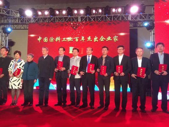 立邦中國(guó)區(qū)總裁鐘中林(Eric Chung,右三)榮獲“中國(guó)涂料工業(yè)百年杰出企業(yè)家”