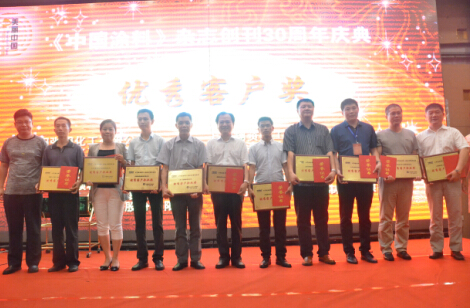 30年來,《中國涂料》親歷著中國涂料工業的發展,記錄著中國涂料工業成長的足跡,見證著中國涂料工業的成長與壯大,承載著涂料人的夢想……而這一切,都與各方的支持和關愛密不可分!是他們,指導著《中國涂料》的發展;是他們,關愛著《中國涂料》的成長;是他們,支持著《中國涂料》的進步。為了鼓勵先進,弘揚正能量,在《中國涂料》雜志創刊30周年之際,中國涂料工業協會特別對30年來在《中國涂料》發展中做出突出貢獻的個人和單位給予表彰。包括:《中國涂料》卅周年特殊貢獻獎14名,《中國涂料》卅周年優秀編委獎24名,《中國涂料》卅周年優秀信息員獎5名,《中國涂料》卅周年優秀合作企業獎23家,《中國涂料》卅周年優秀客戶獎105家。并于2016年8月23日舉辦的《中國涂料》雜志創刊30周年紀念活動中進行了表彰,并以資鼓勵。