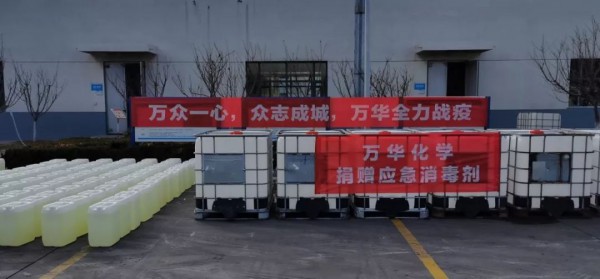 3)面對疫情蔓延消殺用品供應(yīng)不足狀況,向煙臺市政府防疫工作小組承諾:萬華化學(xué)申請成為煙臺市消毒液的后備儲備單位,疫情期間根據(jù)政府要求向煙臺市免費敞口供應(yīng)消毒液,全力支持疫情防控。首批捐贈消毒液10000公斤,已陸續(xù)送往煙臺市開發(fā)區(qū)應(yīng)急管理局和煙臺市應(yīng)急管理局。