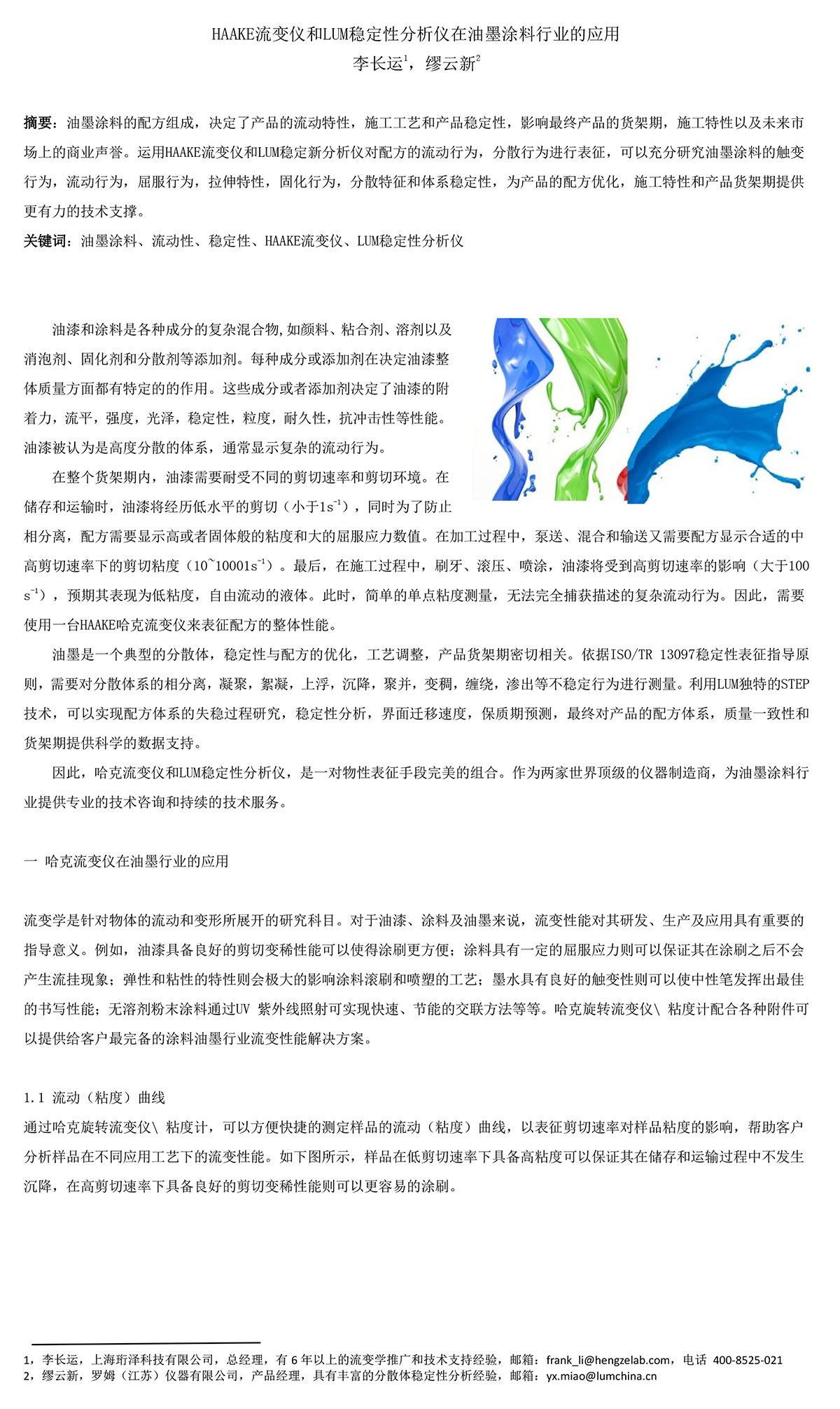 HAAKE流變儀和LUM穩定性分析儀在油墨涂料行業的應用