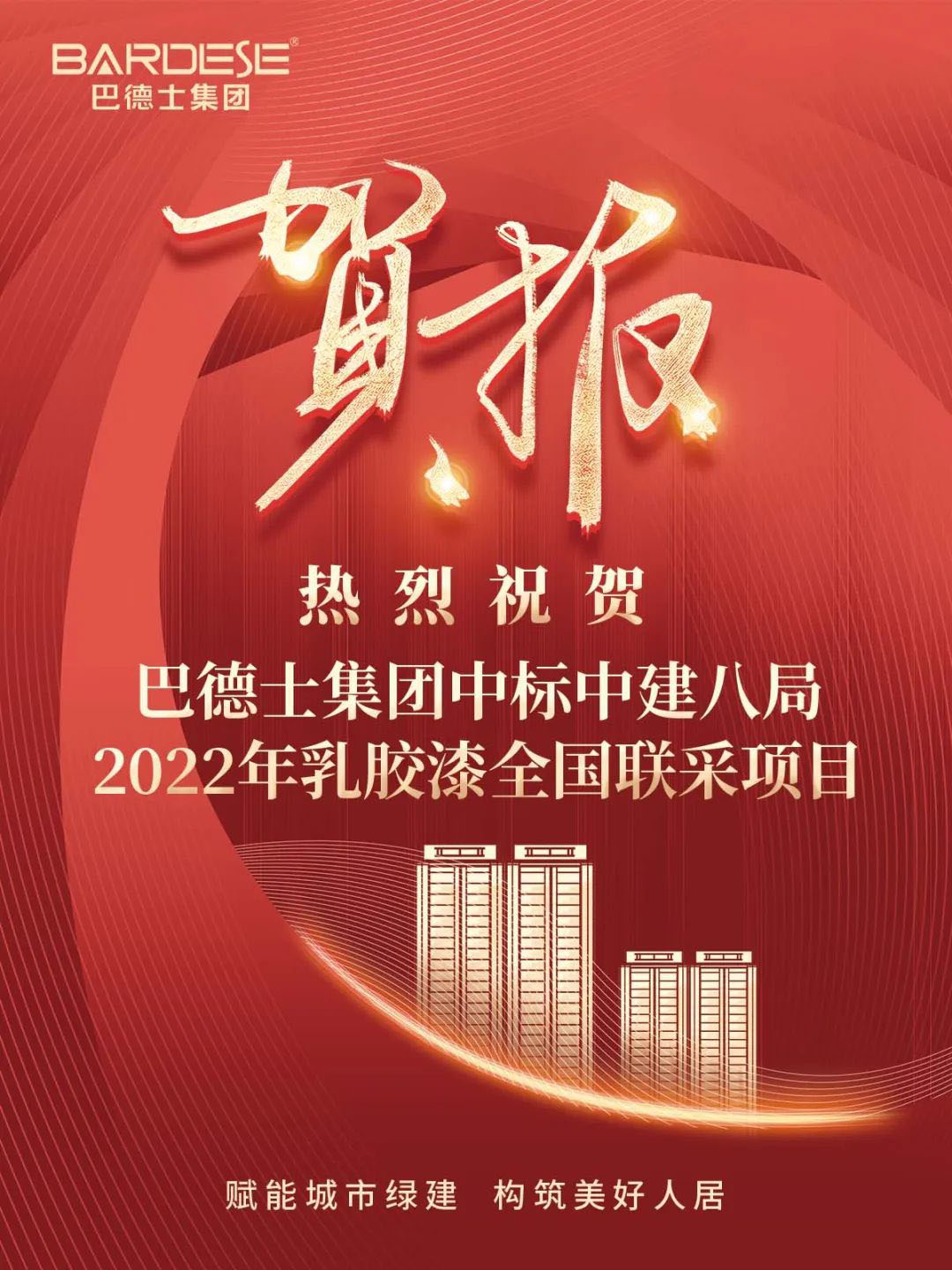 近期,巴德士工程漆市場端喜訊頻傳,巴德士集團以健全的產品體系、涂裝一體化解決方案和專業的配套服務,從多家涂料企業中脫穎而出,成功中標2022年中建八局( 全國區域)乳膠漆聯采項目。本次中標, 加深了巴德士集團與中建八局的合作聯系,彰顯了巴德士在建涂市場的綜合競爭力、品牌影響力,對后期項目合作有重要意義。