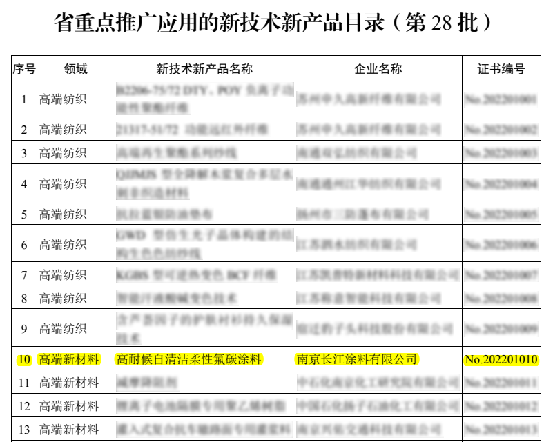 日前,江蘇省新技術(shù)新產(chǎn)品推廣應(yīng)用工作聯(lián)席會(huì)議辦公室頒布了第28批“省重點(diǎn)推廣應(yīng)用的新技術(shù)新產(chǎn)品目錄”,憑借自主創(chuàng)新水平和在重防腐領(lǐng)域的突出表現(xiàn),長(zhǎng)江“高耐候自清潔柔性氟碳涂料”再次上榜新產(chǎn)品名錄!