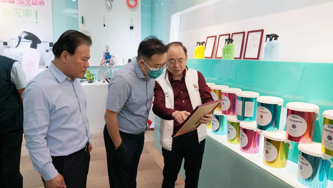 在納米新材料產(chǎn)品展區(qū),郭總著重介紹了益壽漆這款產(chǎn)品,他表示益壽漆作為內(nèi)裝涂料產(chǎn)品,能夠釋放負(fù)氧離子,消除異味,凈化室內(nèi)空氣,且兼具優(yōu)異的洗擦性、防霉性、抗菌性。