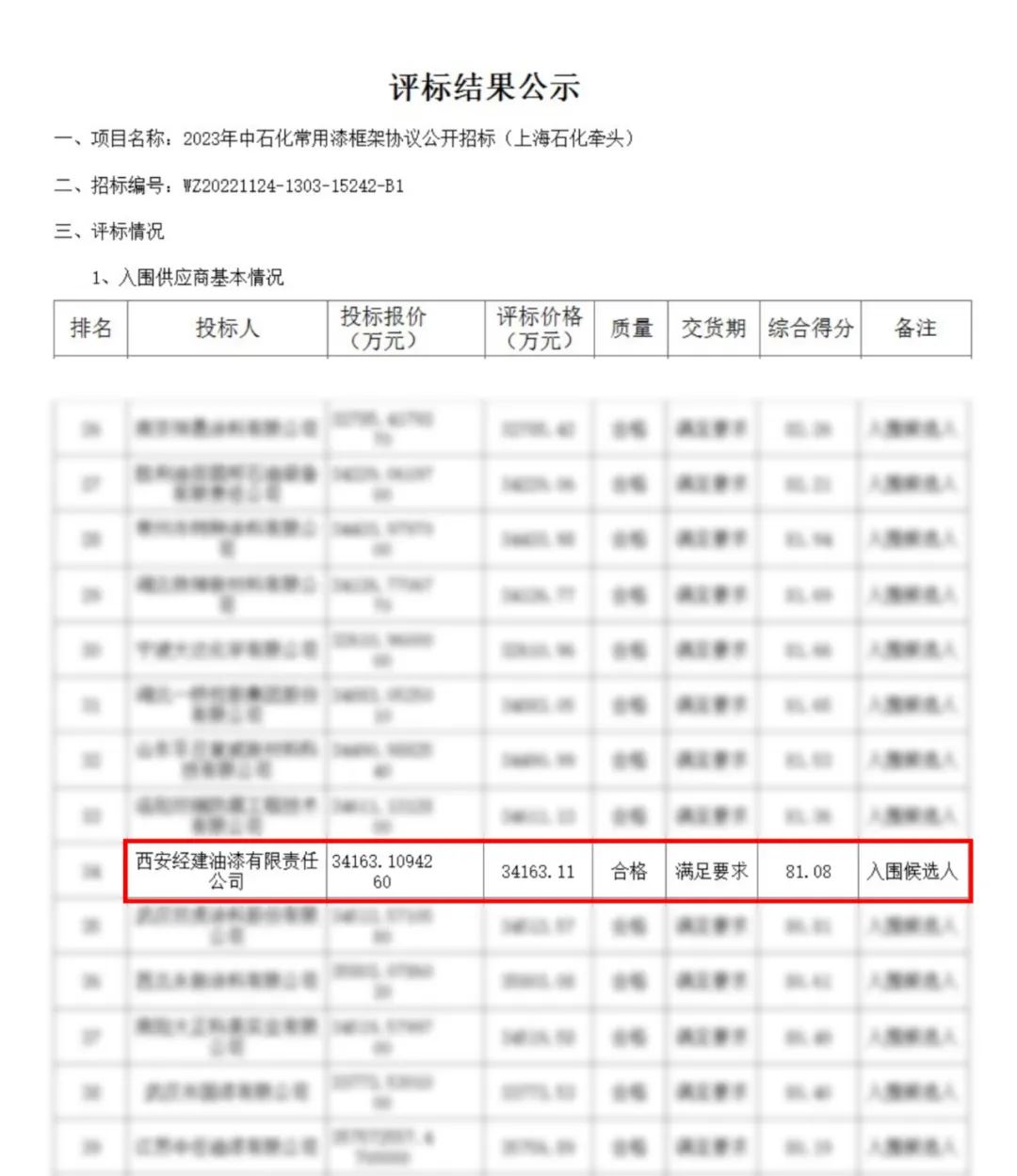 日前,中石化2023年涂料框架協議采購招標拉開帷幕,經過激烈的角逐,西安經建油漆有限責任公司成功中標2023年中石化涂料采購常用漆標段。