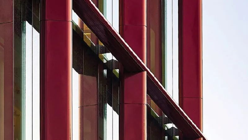 為了開發令人驚嘆的“銀河紅”配方及其閃閃發光的美學效果,PPG建筑金屬涂料團隊幫助客戶定制顏色,使得 PPG Coraflon 粉末面漆結合了玻璃薄片技術,為金屬框架增加了立體的閃爍光澤。