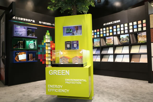 秉承著“關(guān)愛地球,重視可持續(xù)發(fā)展,堅(jiān)持綠色環(huán)保”的理念,威士伯很早就開始了綠色節(jié)能涂料的研發(fā)和應(yīng)用。本次威士伯產(chǎn)品展區(qū)展出的擁有美國專利技術(shù)的綠能全效墻面漆系統(tǒng),是威士伯建筑涂料為促進(jìn)綠色建筑發(fā)展而研發(fā)的提供一站式節(jié)能及色彩解決方案的高端產(chǎn)品體系。綠能體系特有的綠能硅球技術(shù)、高效反射技術(shù)和超親水界面等核心技術(shù),能很好控制墻體熱量的吸收和傳遞,有效改善室內(nèi)溫度及濕度,節(jié)省空調(diào)制冷能耗,打造出更自然舒適的室內(nèi)環(huán)境。此外,該體系還應(yīng)用了寬域視覺色彩技術(shù),采用了特殊紅外反射顏料,突破了傳統(tǒng)反射隔熱涂料只能在白色或淺色系下才具有較好反射隔熱效果的壁壘,令建筑物達(dá)到節(jié)能與色彩的平衡統(tǒng)一。目前,威士伯綠能全效墻面漆系統(tǒng),在改善城市生態(tài),構(gòu)筑人居和諧平衡等方面正發(fā)揮著積極的作用,因而受到了眾多地產(chǎn)商、建筑設(shè)計(jì)師以及施工單位的信賴。