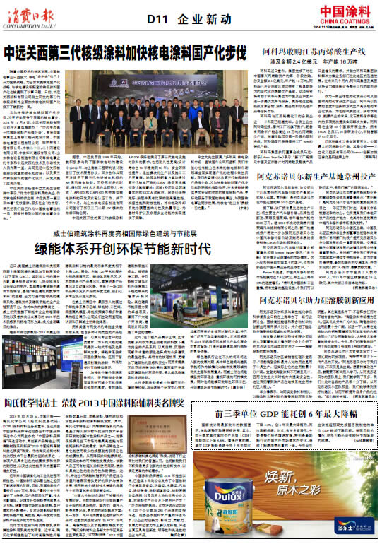 《中國涂料報》(電子版)的一切內容(包括但不限于文字、圖片、PDF、圖表、標志、標識、商標、版面設計、專欄目錄與名稱、內容分類標準以及為讀者提供的任何信息)僅供中國涂料信息網讀者閱讀、學習研究使用,未經中國涂料雜志社有限公司及/或相關權利人書面授權,任何單位及個人不得將《中國涂料報》(電子版)所登載、發布的內容用于商業性目的,包括但不限于轉載、復制、發行、制作光盤、數據庫、觸摸展示等行為方式,或將之在非本站所屬的服務器上作鏡像。否則,中國涂料雜志社有限公司將采取包括但不限于網上公示、向有關部門舉報、訴訟等一切合法手段,追究侵權者的法律責任。