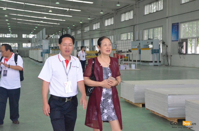 嘉賓們抵達固克(天津)公司后,首先參觀了整個生產(chǎn)基地。目前,天津基地是國內(nèi)最大的保溫一體板生產(chǎn)企業(yè),建有天工石生產(chǎn)車間、保溫材料車間、涂料車間、研發(fā)中心、實驗室等系列配套設(shè)施。