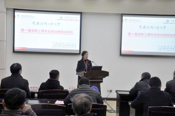 中國(guó)涂料工業(yè)大學(xué)校長(zhǎng)、中國(guó)涂料工業(yè)協(xié)會(huì)會(huì)長(zhǎng)孫蓮英女士為結(jié)業(yè)典禮致辭